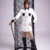 Plutôt court. Peut se porter avec ou sans bas.